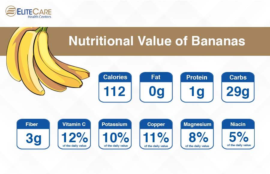 موز غنی از فیبر (۳ گرم) است و مواد مغذی دیگری نیز دارد، از جمله: