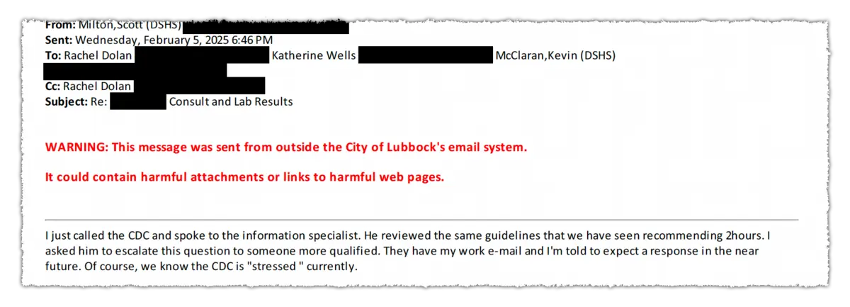 داسکالایکس گفت که بهمحض شدت یافتن شیوع در تگزاس، تیم CDC او با سکوت مواجه شد هنگامی که سعی داشت به کننی و سایر مقامات HHS گزارش دهد.