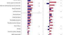 برای برآورد همبستگی‌های ژنتیکی با سایر صفات، از آمارهای خلاصهٔ عمومی موجود استفاده کردیم و اختلالات روانپزشکی مهم و عوامل کلیدی سلامت و نتایج مرتبط، از جمله خودکشی، شاخص توده بدنی، سطح آموزش، مصرف مواد، مرگ و بیماری‌های قلبی‌عروقی را انتخاب کردیم (منابع GWAS در جدول تکمیلی 15).