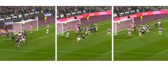 تا زمانی که توپ به داخل میآید، تقریباً همهٔ آنها به پست نزدیک متمرکز میشوند. با اینقدر حرکت، مدافعان وستهام نشانهگیری خود را گم میکنند، در حالی که دو مدافع واقع در نزدیکی پست نزدیک نمیتوانند حرکات پشت سر خود را ببینند.