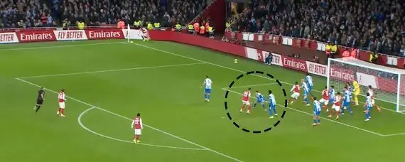 نتیجه این است که، بهطوری باورنکردنی، گابریل ماگالهاس، بهترین حضور هوایی آرسنال، یک سرزنی آزاد میگیرد.